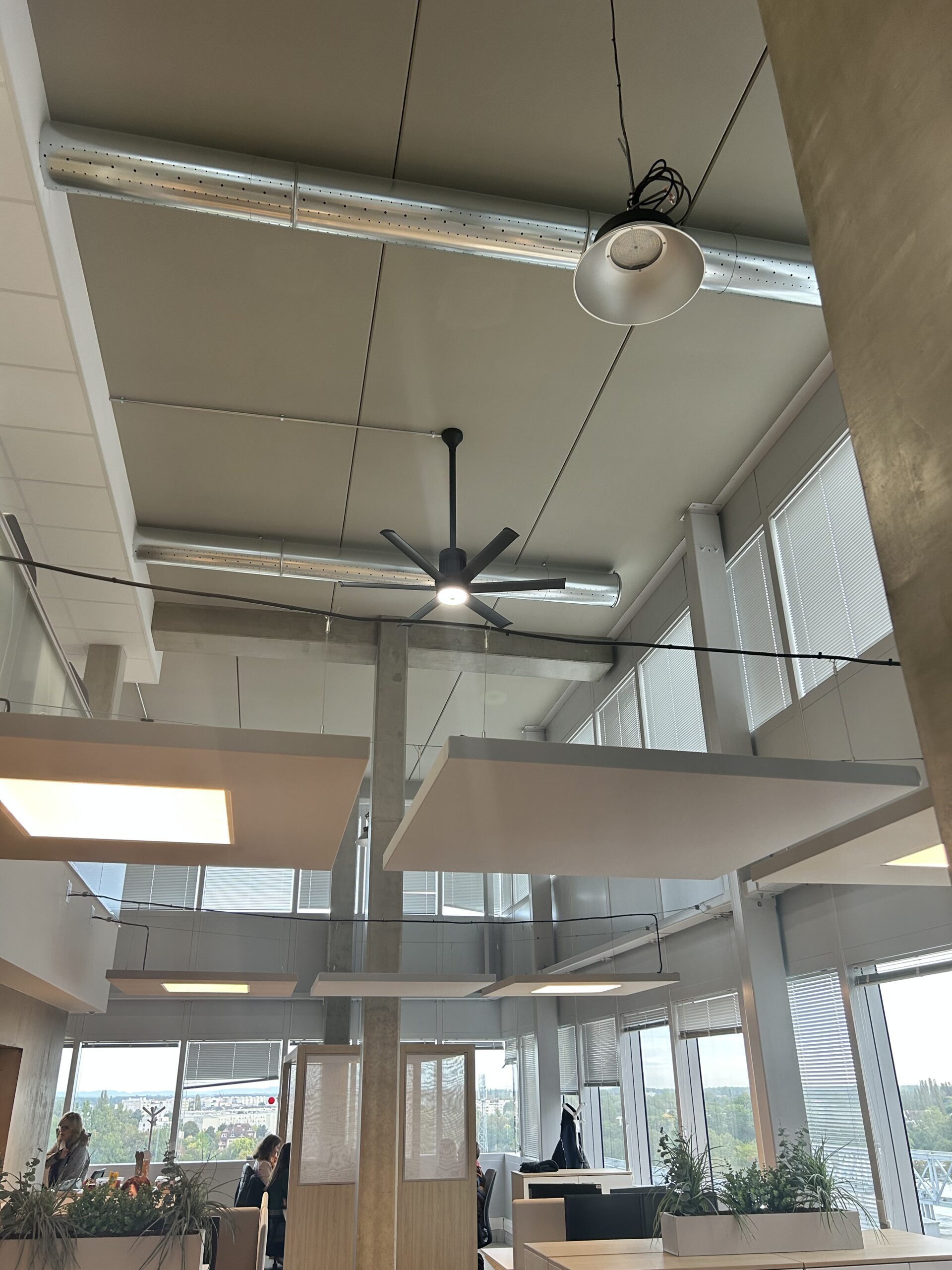 Les brasseurs d’air de plafond permettent d’améliorer le confort d’été. Si les bureaux sont climatisés, les brasseurs de plafond augmentent l’efficacité de la climatisation et permettent de réduire sa puissance.